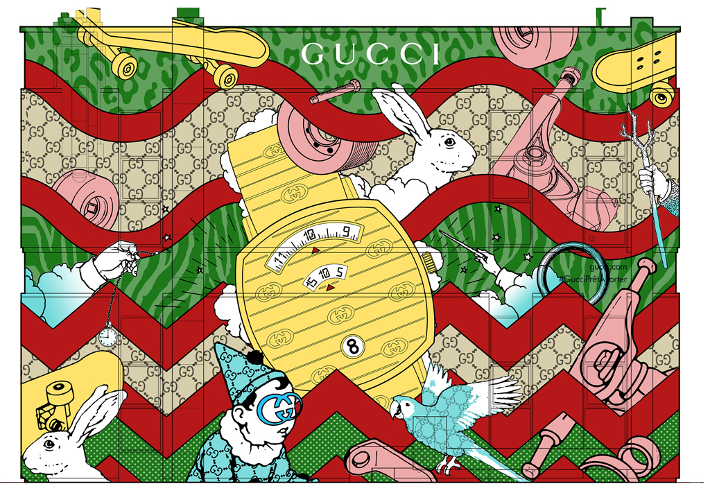 Mural design and digital campaign for Gucci "Grip" watches. The theme was 'magic' and of course skateboarding,which the grip watches watch designed for