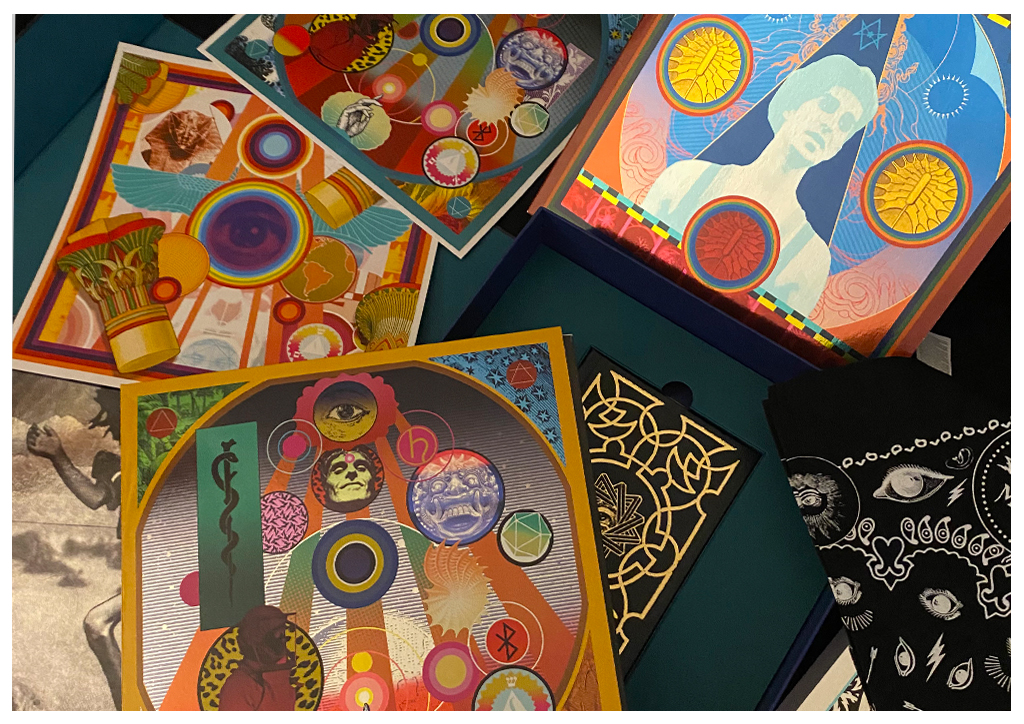 Designed and illustrated this limited edition boxset. including 3 original prints,album designs, a book & The viynl itself was designed and cut with hologram technology.