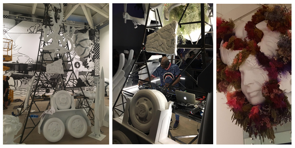 installation . the DJ Room at Sweet Harmony exhibiton.The room was called "Land Rover". A meditation on cold war and free parties of the 90's. The meeting of those ideas and the climate it came from, rebellion, the use of british property and land. headed up by Asterix the rebel who fought the empire.