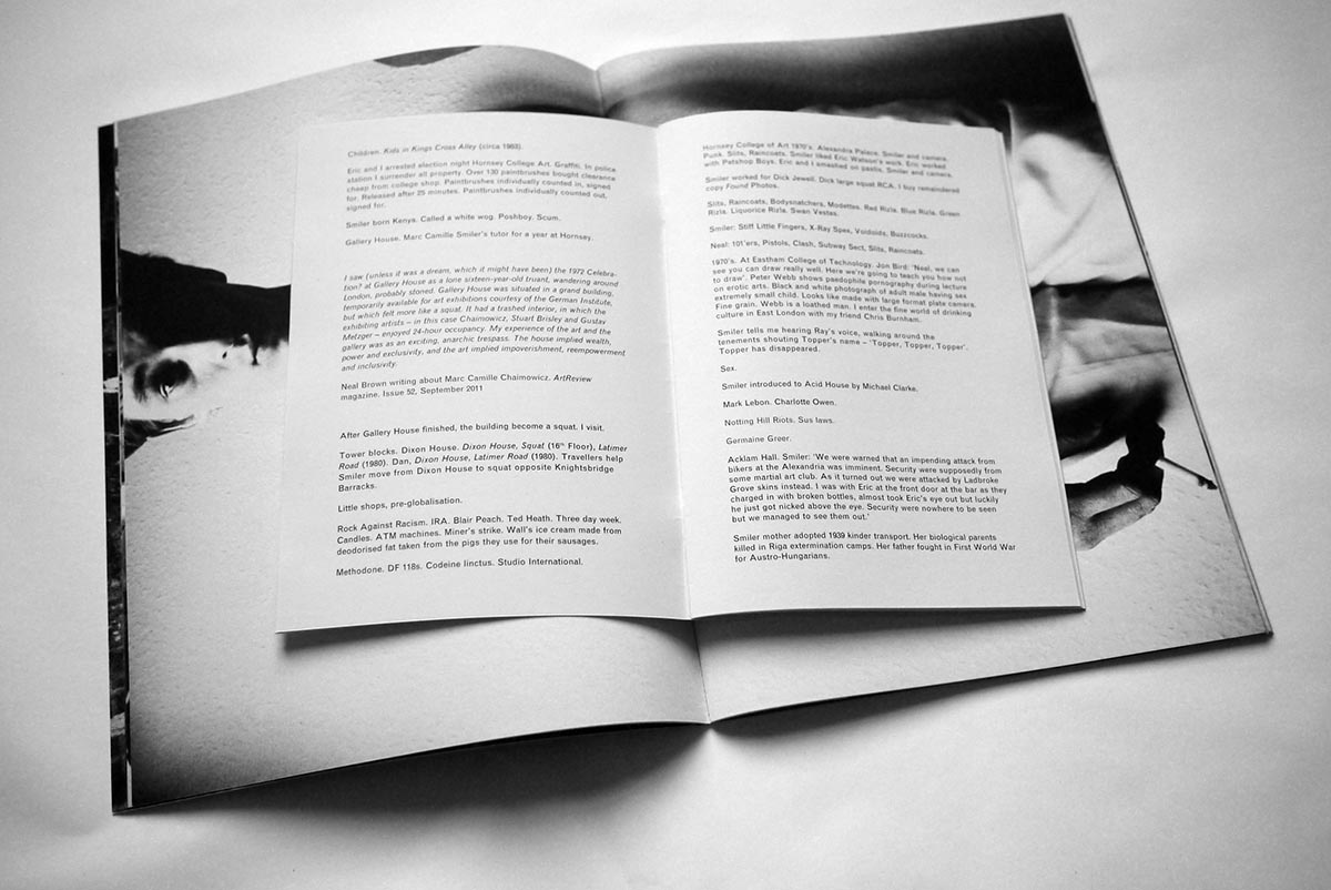 Typesetting and design for 'Smiler'photobook published by Sorika, to accompany exhibition at ICA. Two other books where collaborations with the sportsbanger book and 'stop the war' with writers and labels